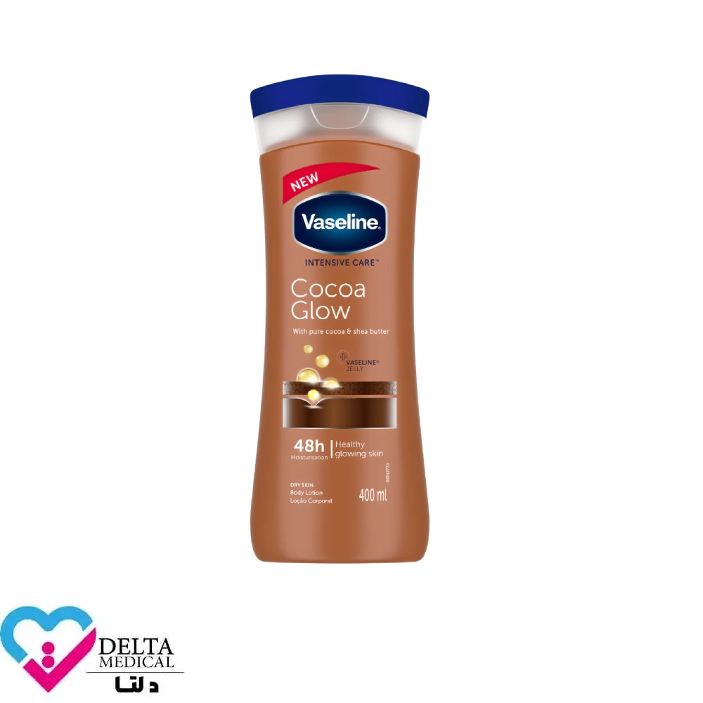 لوسیون بدن کاکائو وازلین (Vaseline Cocoa Glow) | مرطوب کننده ۴۸ ساعته با درخشش طبیعی